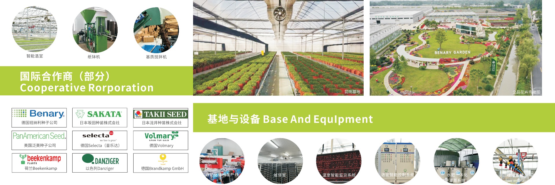 成都金品花卉種苗有限責任公司是一家由成都金田種苗有限公司、廈門愛墾園藝有限公司、德國班納利種子有限公司于2016年10月共同出資成立的中德合資企業。公司擁有現代化的設施設備和經驗豐富的管理研發團隊,長期致力于國際新優花卉品種引進、研發、推廣和銷售,主營國際花卉新品種引進及展示推廣、花卉種子及農資產品銷售、優質花卉種苗生產與銷售、精品盆花生產與銷售、歐洲花卉生產技術設施設備的引進推廣、教育科研、園藝工程、觀光旅游等業務。